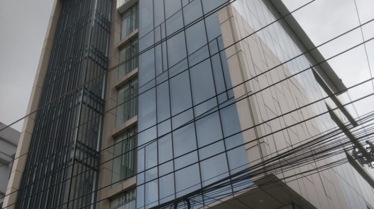 a very compact arrangement to maximize the office space. The full glazed front façade invites